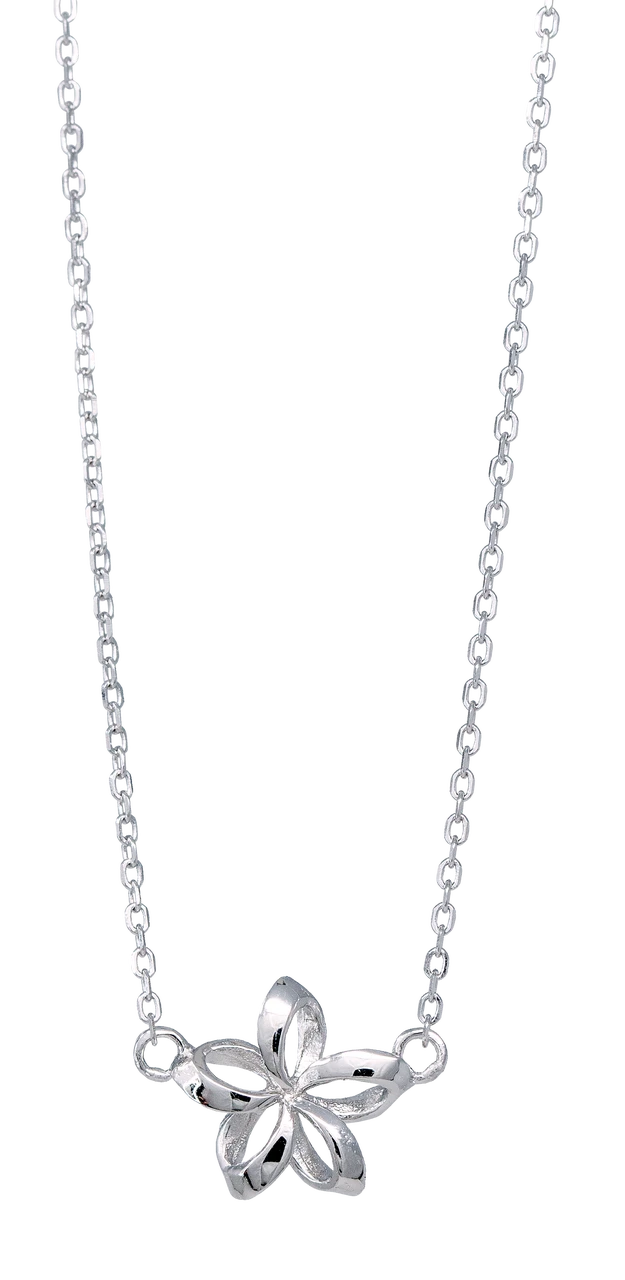 Moana Collection Sterling Silver Pendant Chain Necklace: Open Plumeria